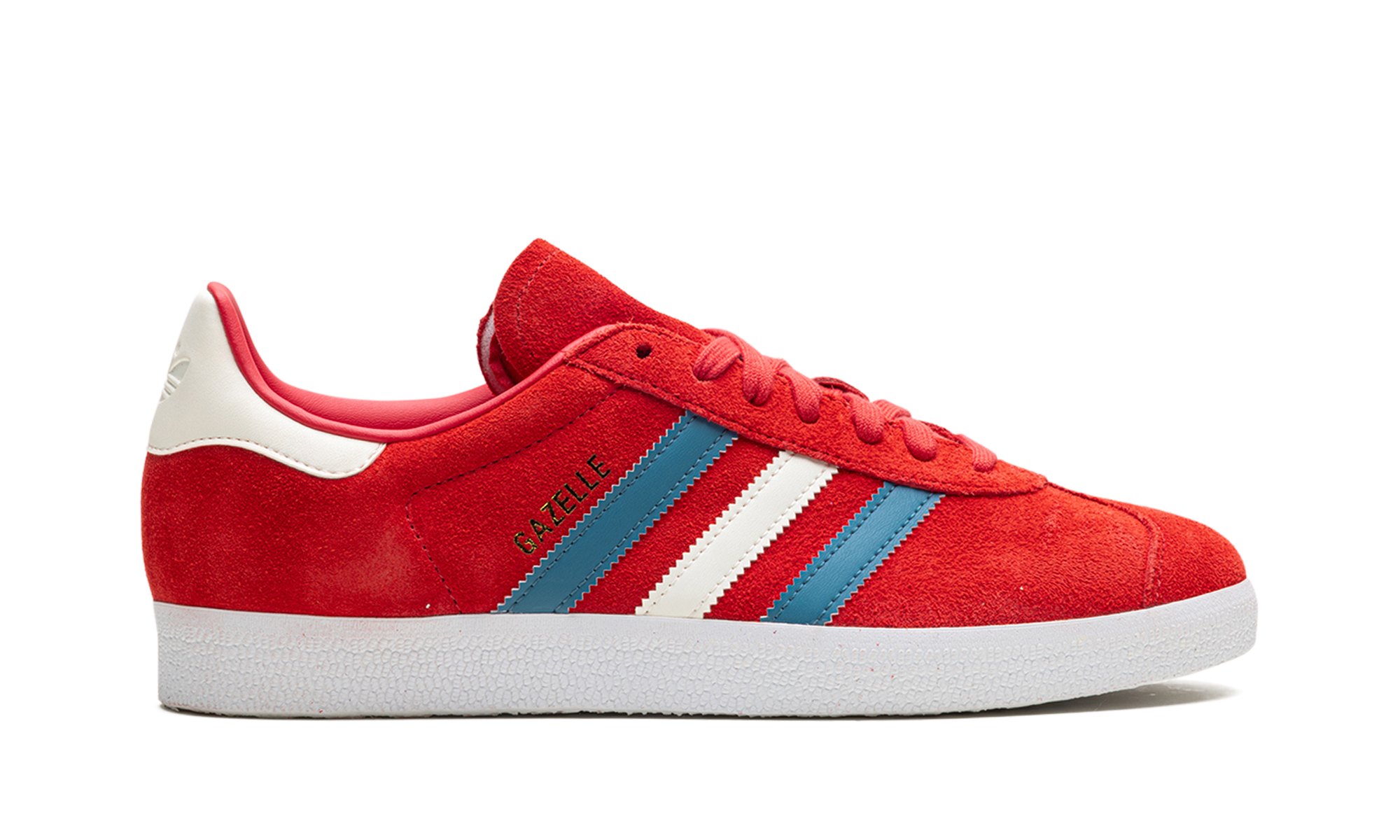 I tocchi finali includono l'iconico marchio "GAZELLE" sul lato e il logo del Trifoglio impresso sulla linguetta posteriore, il tutto su una suola in gomma bianca e pulita. Un must-have per ogni vero fan.